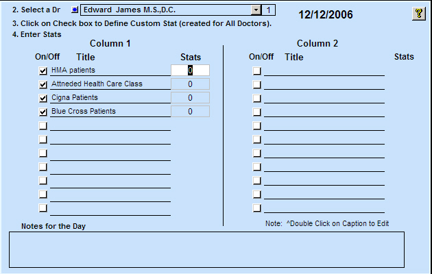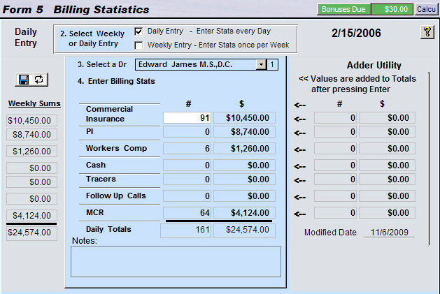 statistics: Daily Stats, Patient Referrals, Exams and Adjustments,